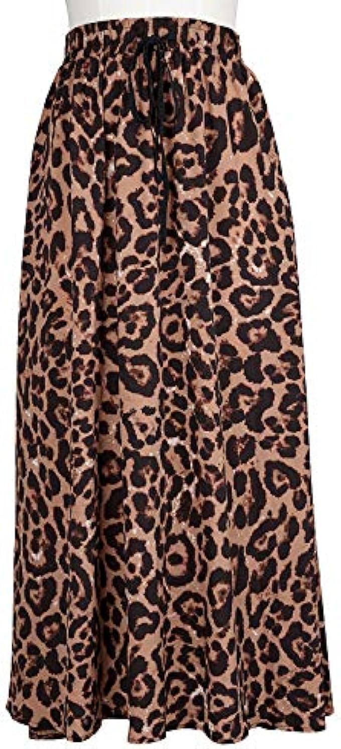 • Features: High rise, elastic waist, with drawstring, pleated, flowy and flared, a line, floor length long skirt, leopard print maxi skirt.