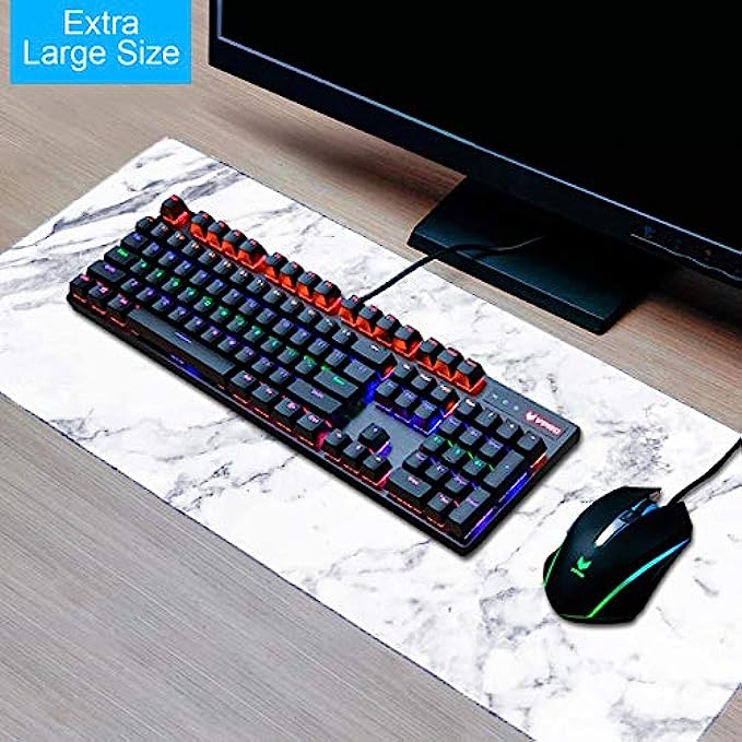 • 【Large multifunctional desk pad】Large extended desk mouse pad, 35.4"x15.7"x0.1"- large and perfect size, provide you a larger usable area to cover keyboard, Applies to all types of keyboards and mice. The large size of keyboard pad for never worry about running off the edge.