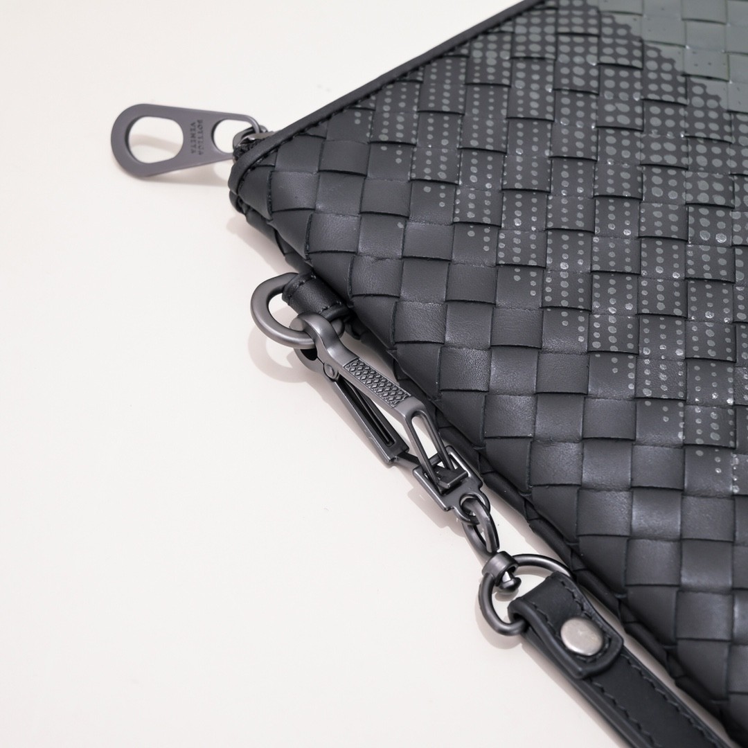 【BOTTEGA VENETA 寶緹嘉】Intrecciato 灰黑漸層手拿包|霧面拼色 × 編織皮革 × 義式極簡風