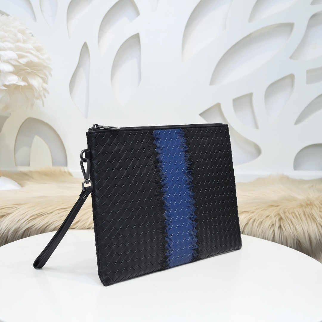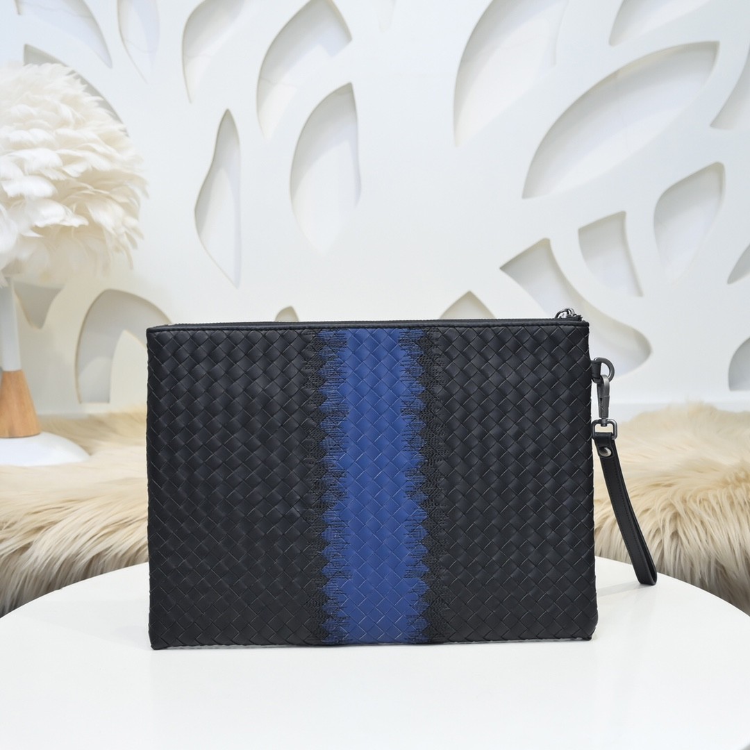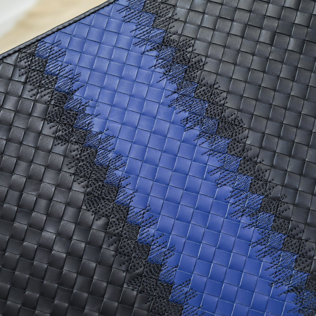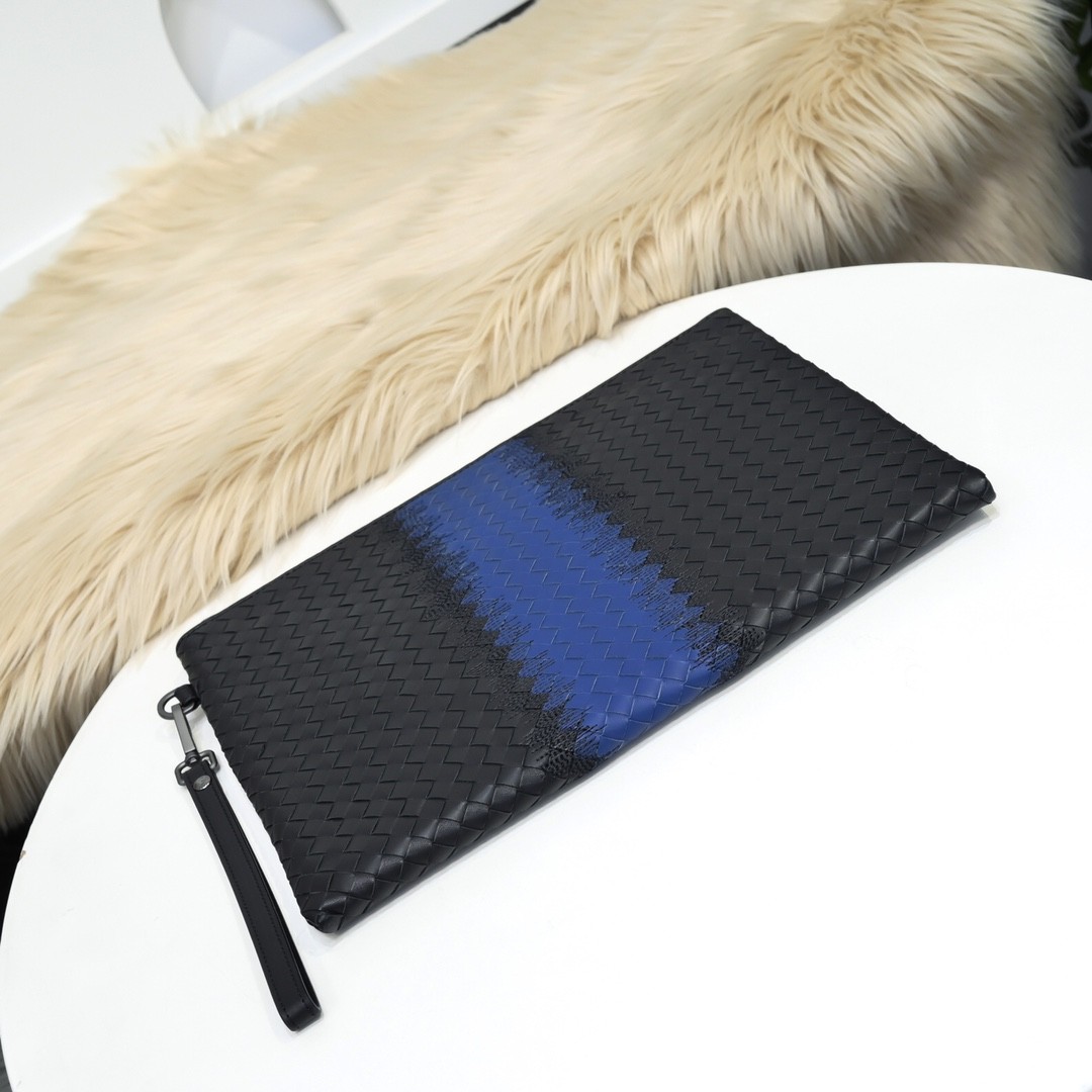 【BOTTEGA VENETA 寶緹嘉】Intrecciato 藍黑拼接手拿包|經典編織 × 立體條紋 × 商務時尚風