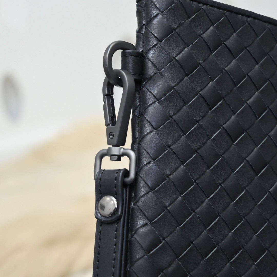 【BOTTEGA VENETA 寶緹嘉】Intrecciato 扣帶信封手拿包|黑色編織 × 真皮拼接 × 義式簡約風