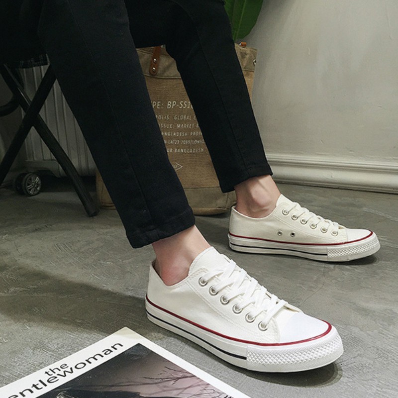 [BY SCHUMART] Unisex White/Black Canvas Sneakers School Shoes Casual Outfit