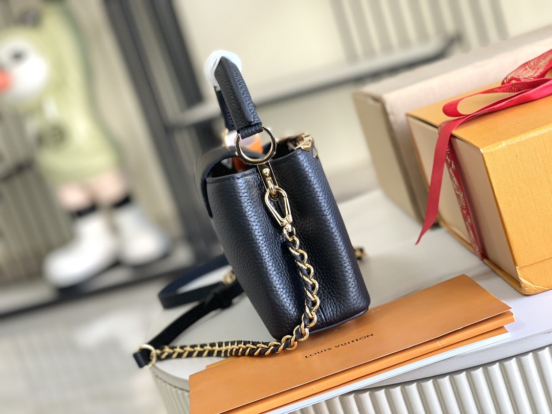 花冠五金 Capucines Mini 迷你款,皮革包身的顶部邊緣環繞花朵,恰如經典設計