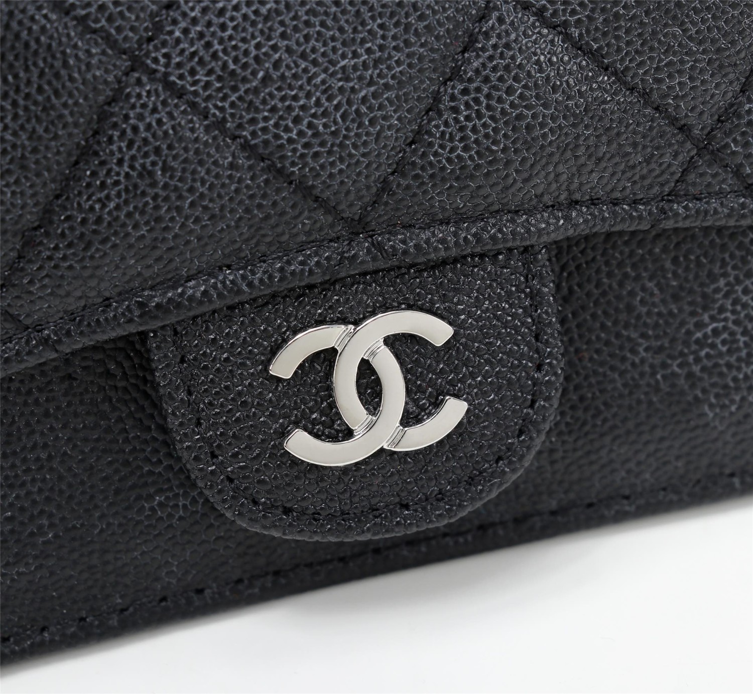 【CHANEL 香奈兒】Classic Zipped Card Holder 菱格拉鍊卡夾(黑銀款)