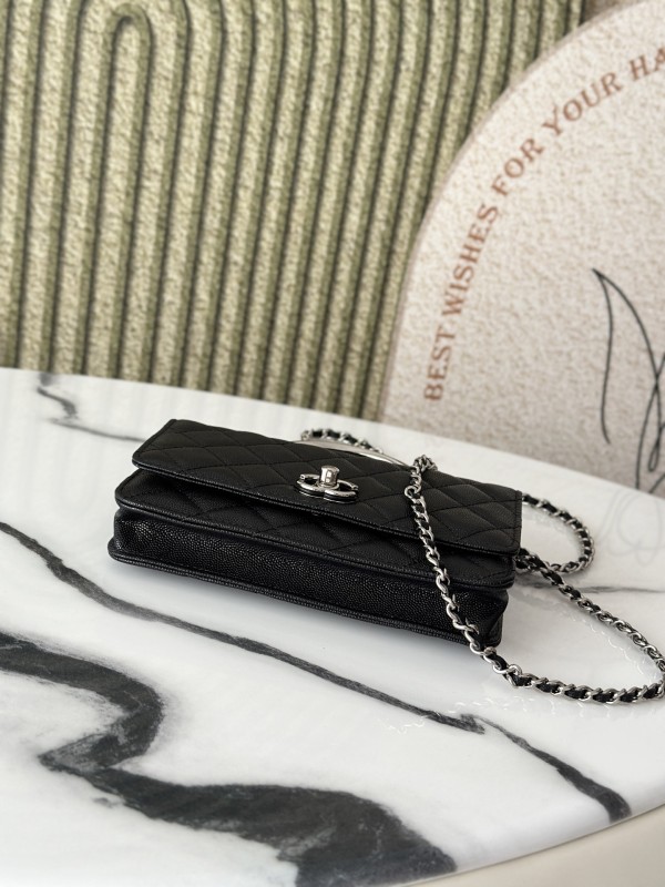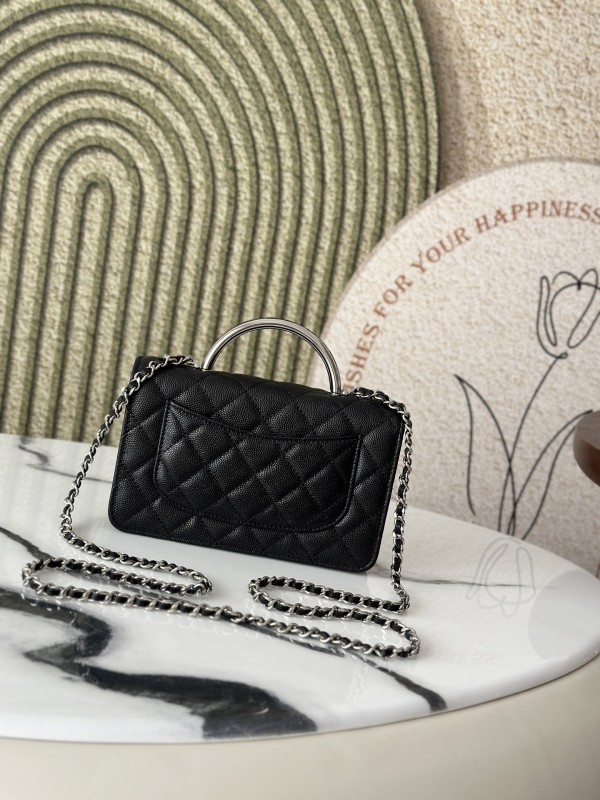 CHANEL 香奈兒 Mini Top Handle Flap 小型菱格紋鏈條包(黑銀款)