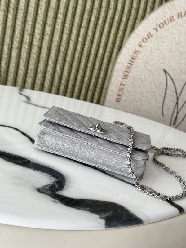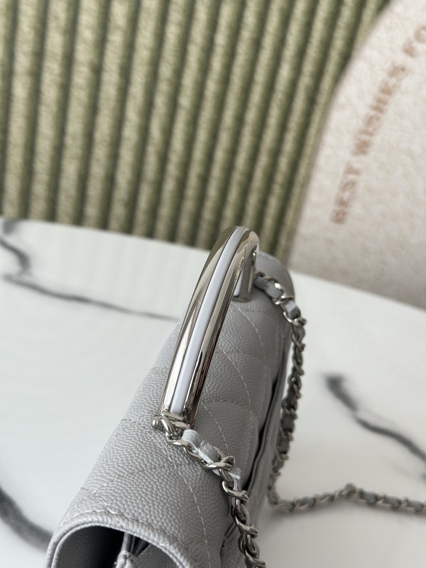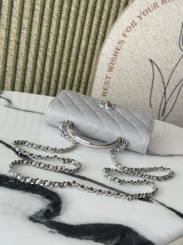 CHANEL 香奈兒 Mini Top Handle Flap 小型菱格紋鏈條包(灰銀款)