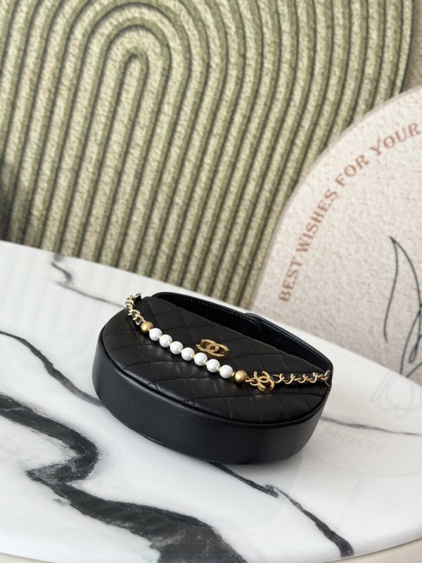 CHANEL 香奈兒 Pearl Crush Half Moon Bag 珍珠半月包(黑金款)