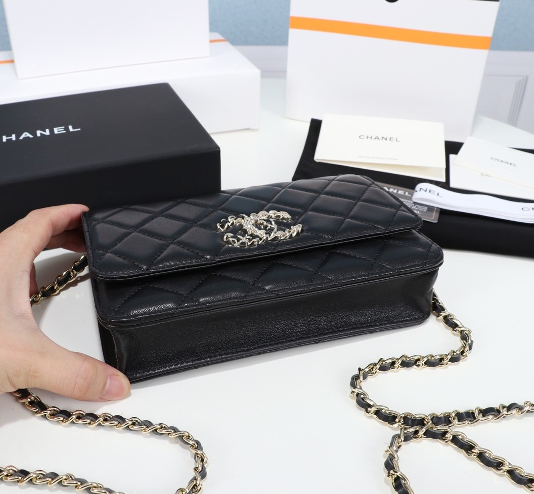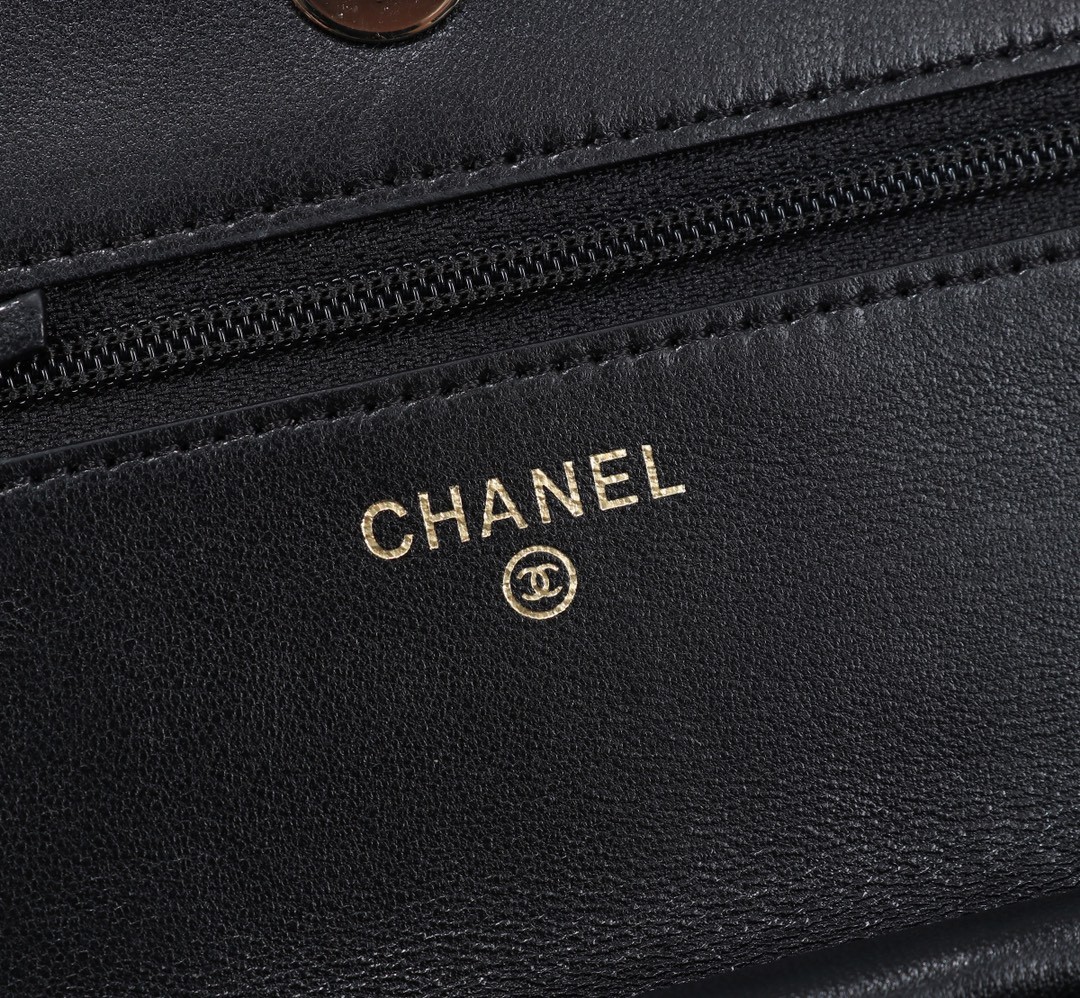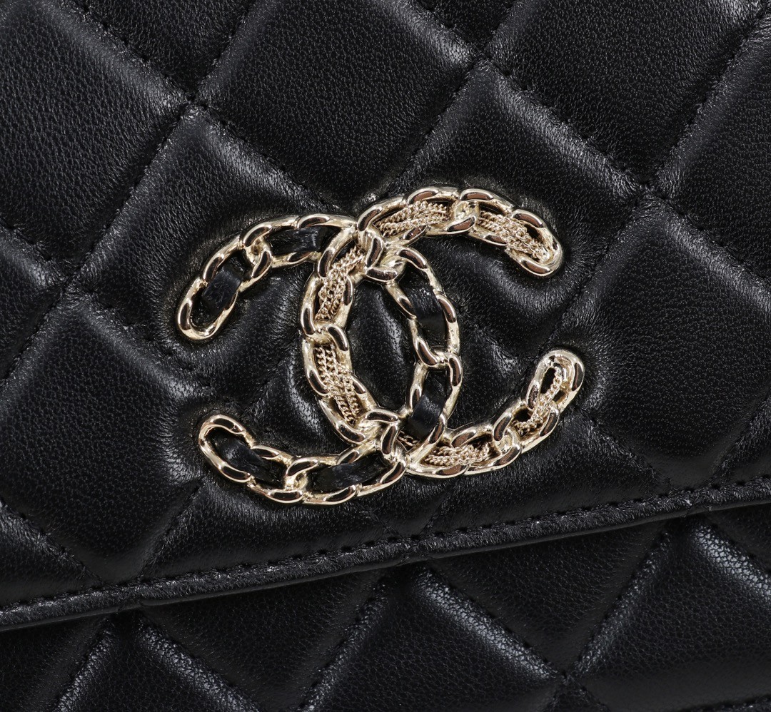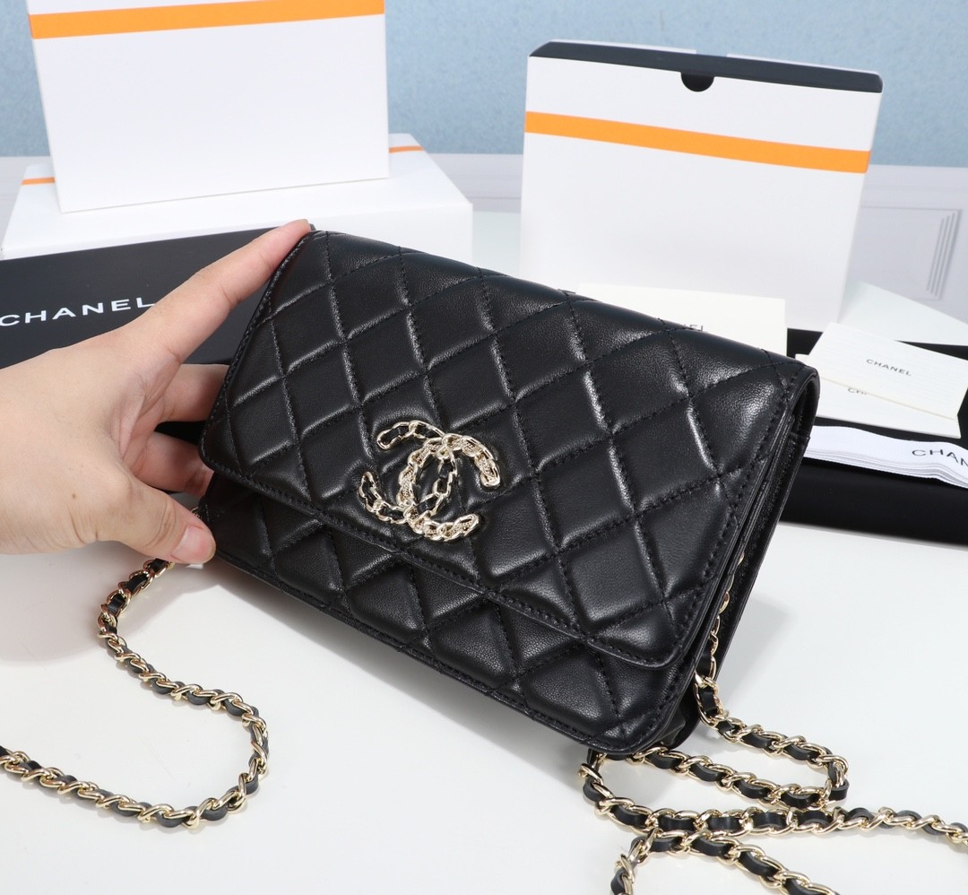 【CHANEL 香奈兒】經典菱格鏈條皮夾包 WOC|黑色羊皮 × 金鍊雙C標誌 × 優雅百搭小香風