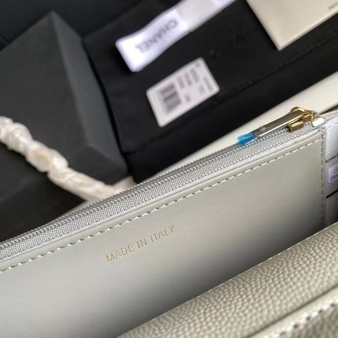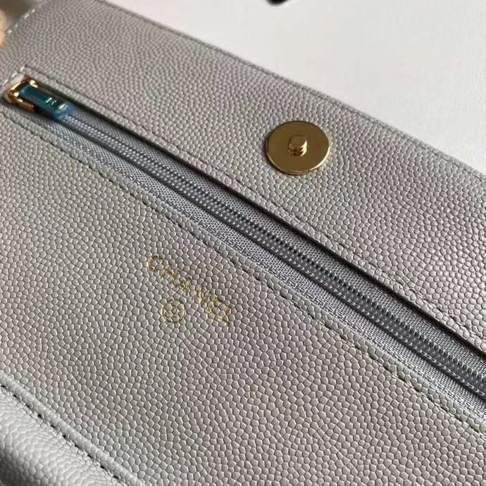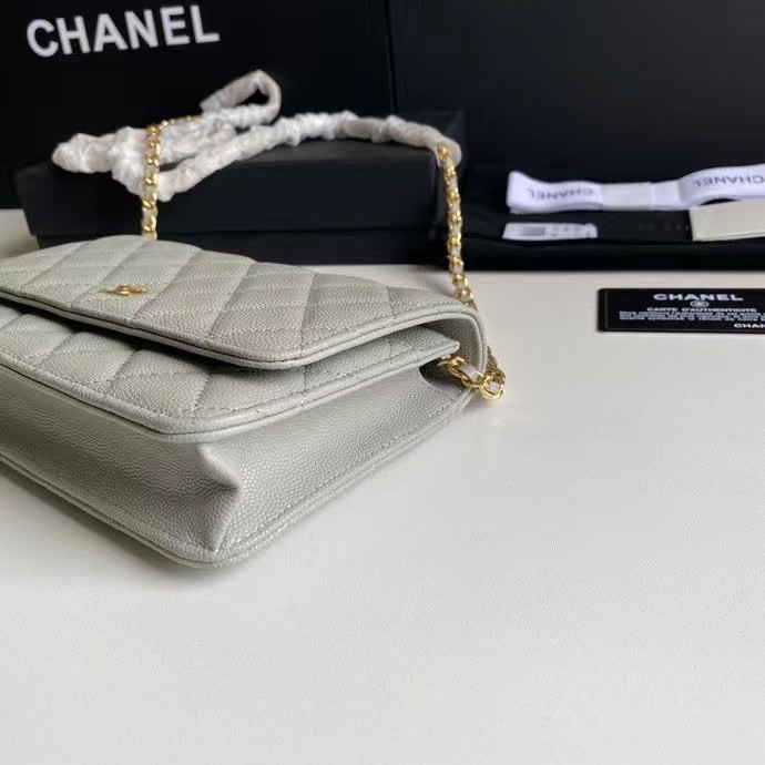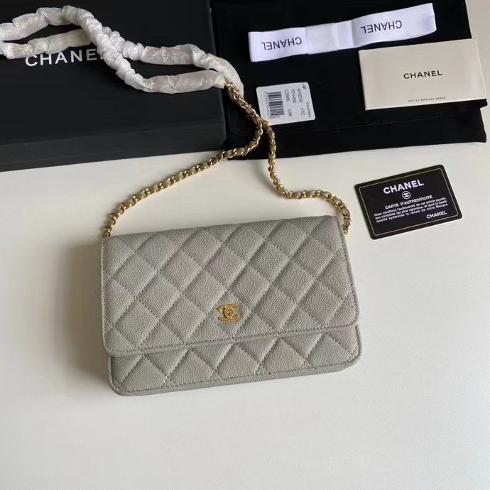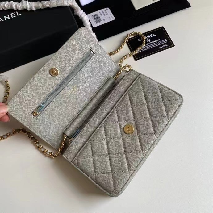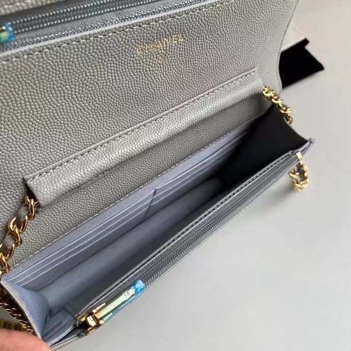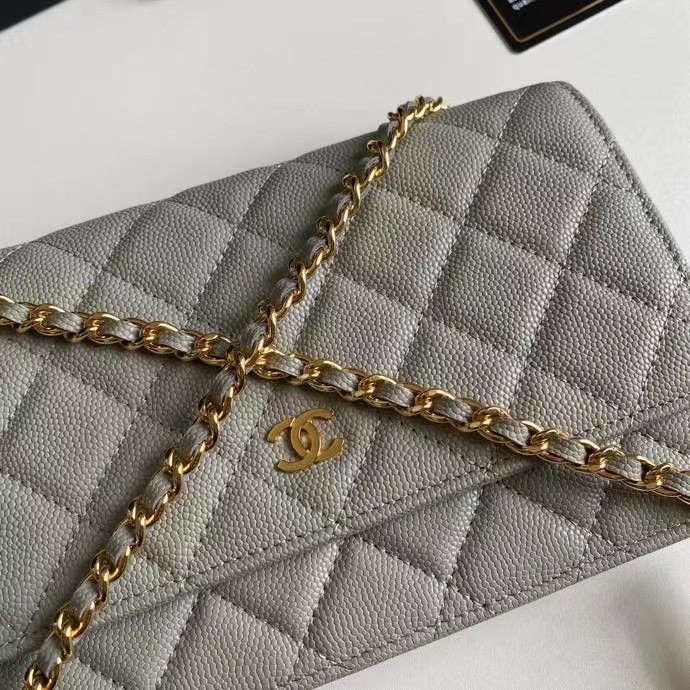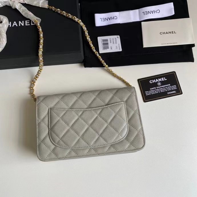 CHANEL經典菱格紋雙C粒面牛皮WOC 灰色