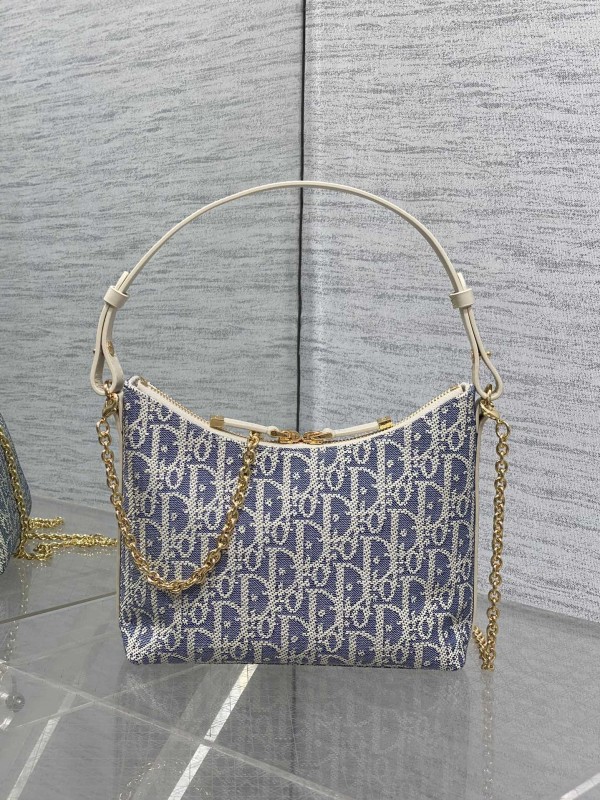 ChatGPT 說:【DIOR】30 Montaigne 藍白老花肩背包|Oblique 緹花 × CD 雙扣 × 鍊條皮帶設計