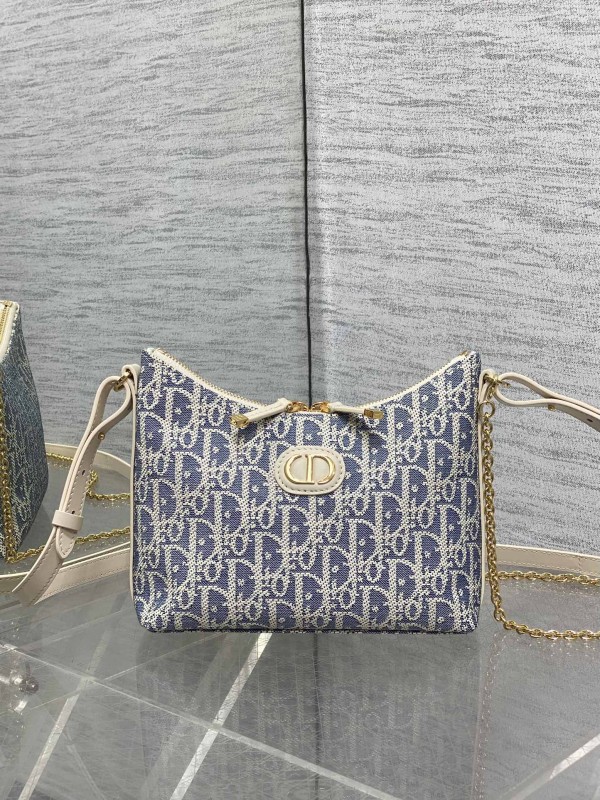 【DIOR】30 Montaigne Avenue 深藍 Oblique 帆布|經典金屬 CD 扣 × 皮革鏈條雙肩帶設計