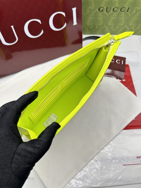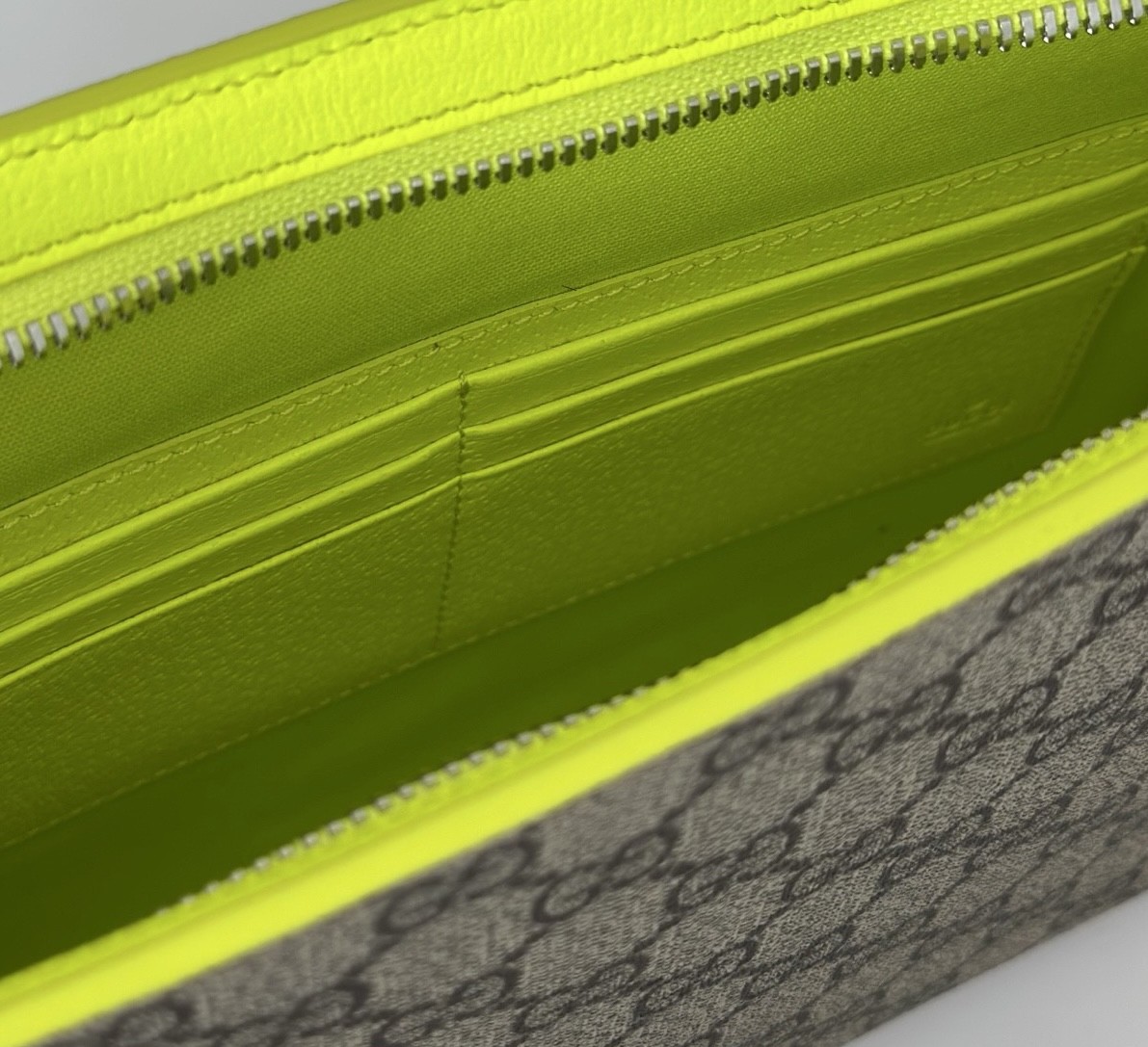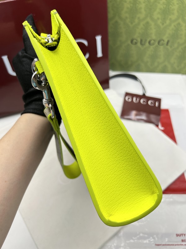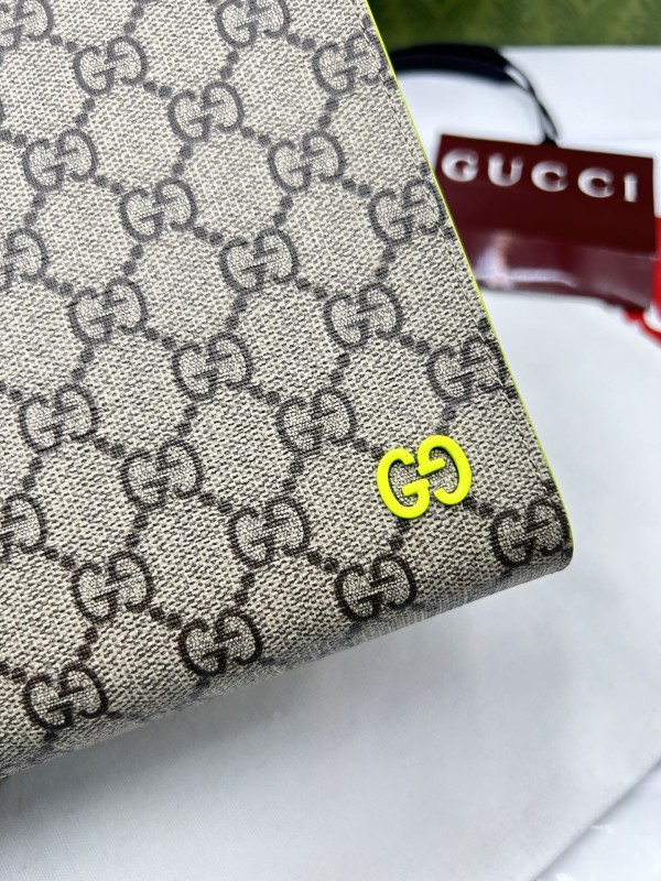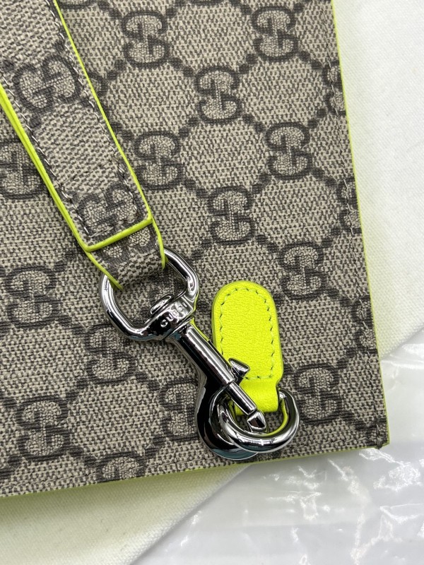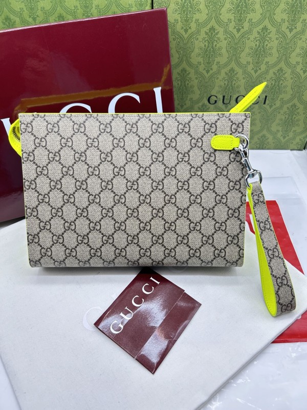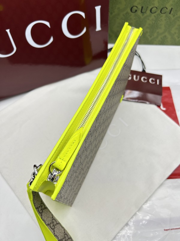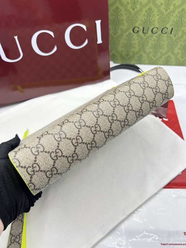 【GUCCI 古馳】GG Supreme 螢光黃邊手拿包|經典雙G帆布 × 亮黃撞色設計 × 潮流休閒風
