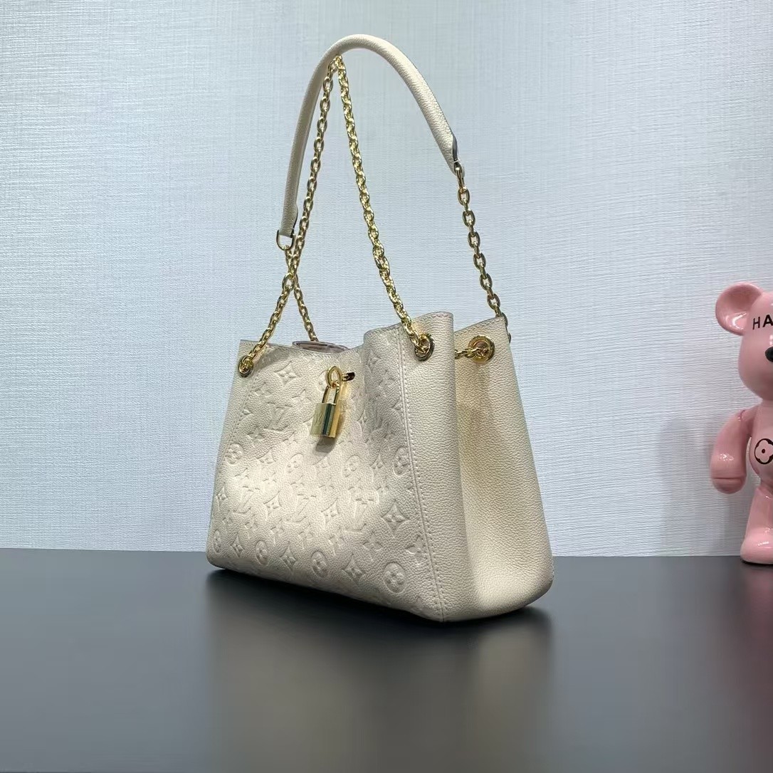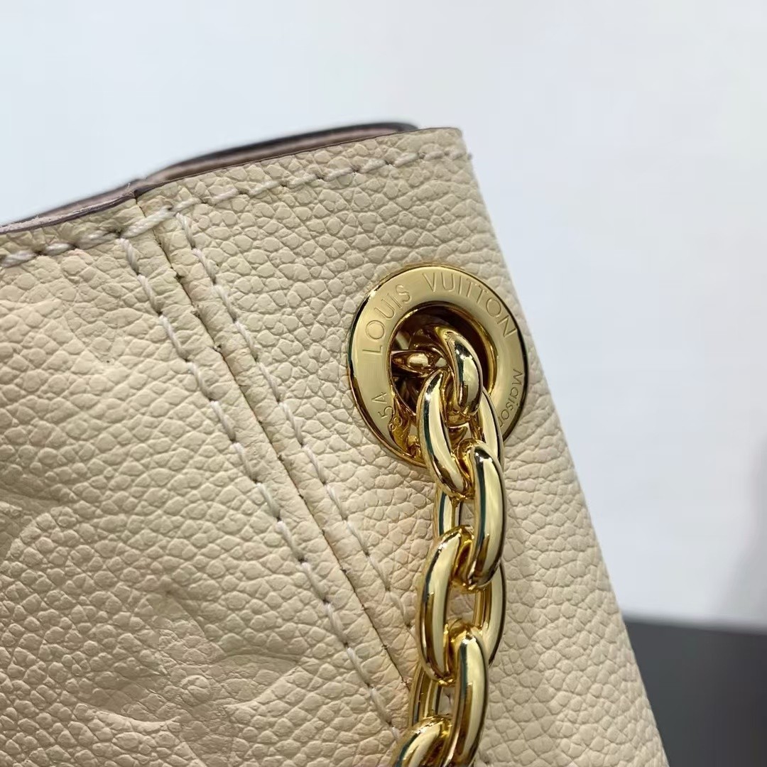 【LOUIS VUITTON】Monogram Empreinte 奶油白 Pochette Métis|金鏈肩背 × 鎖扣設計 × 壓紋牛皮