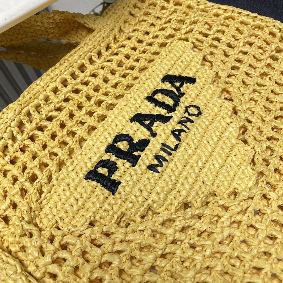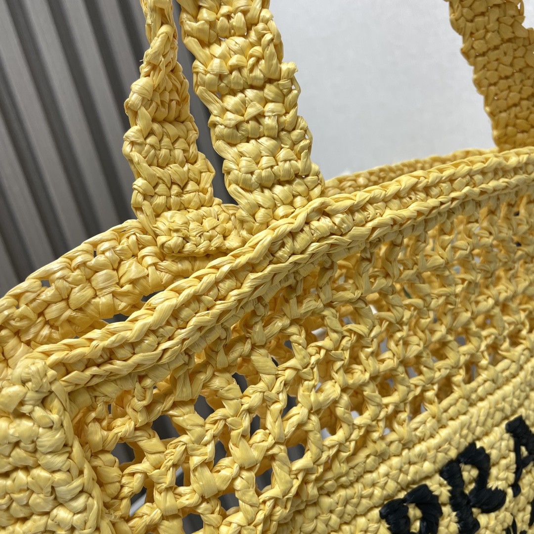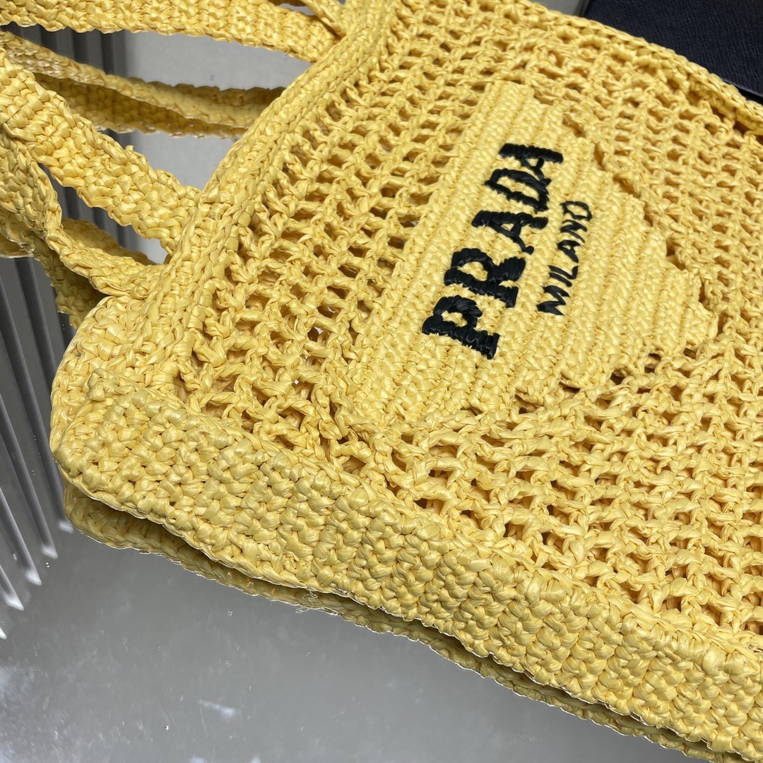 【PRADA 普拉達】Raffia 編織托特包|亮黃色 × 黑色Logo × 夏日陽光風