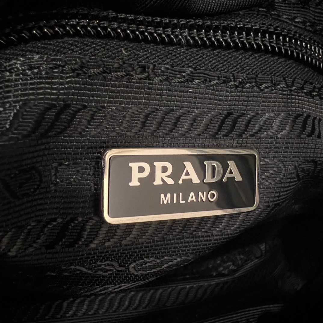 【PRADA 普拉達】Re-Nylon 鍊條水桶包|金鍊裝飾 × 三角Logo × 都會簡約黑色