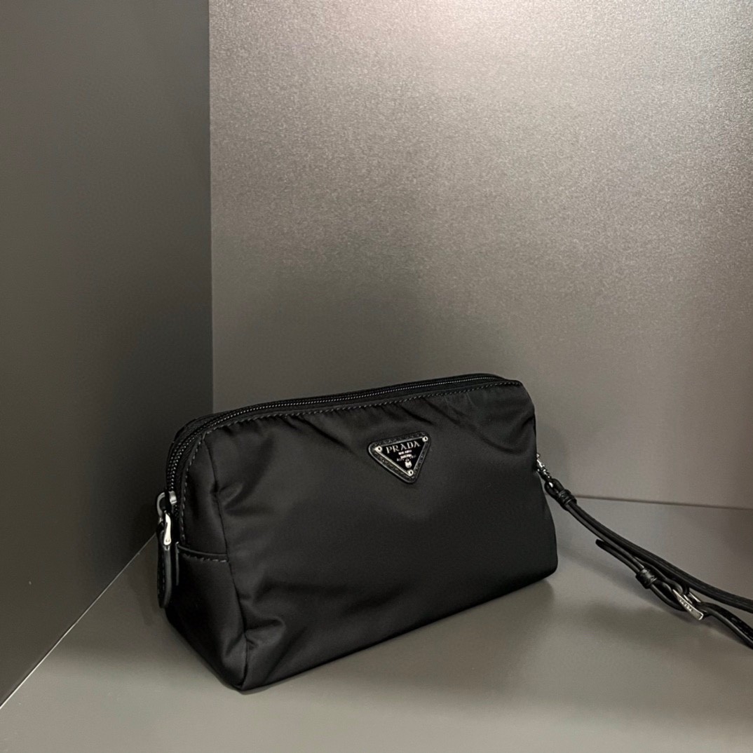 【PRADA 普拉達】Re-Nylon 三角Logo手拿包(附皮革手繩)|防潑水尼龍 × 義式極簡風