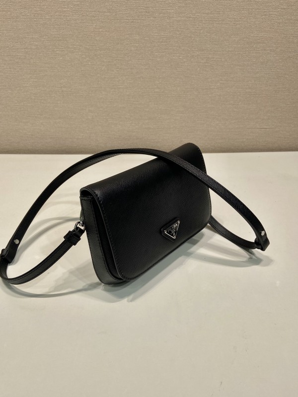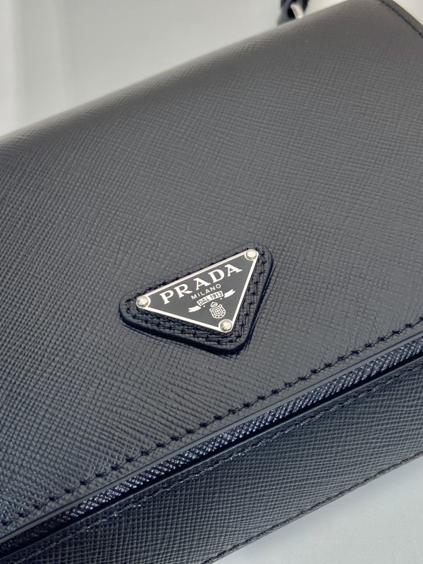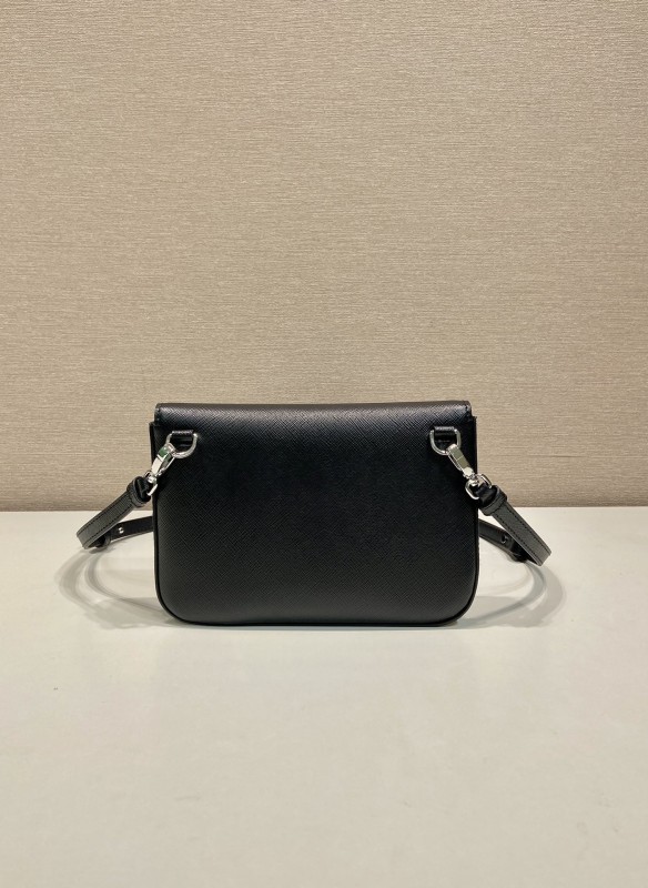 【PRADA】Saffiano Leather Crossbody|經典黑 × 三角徽標 × 磁吸翻蓋