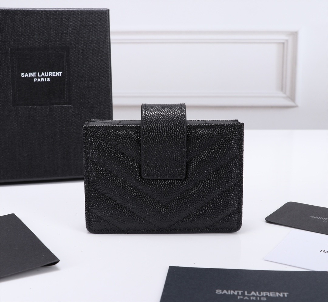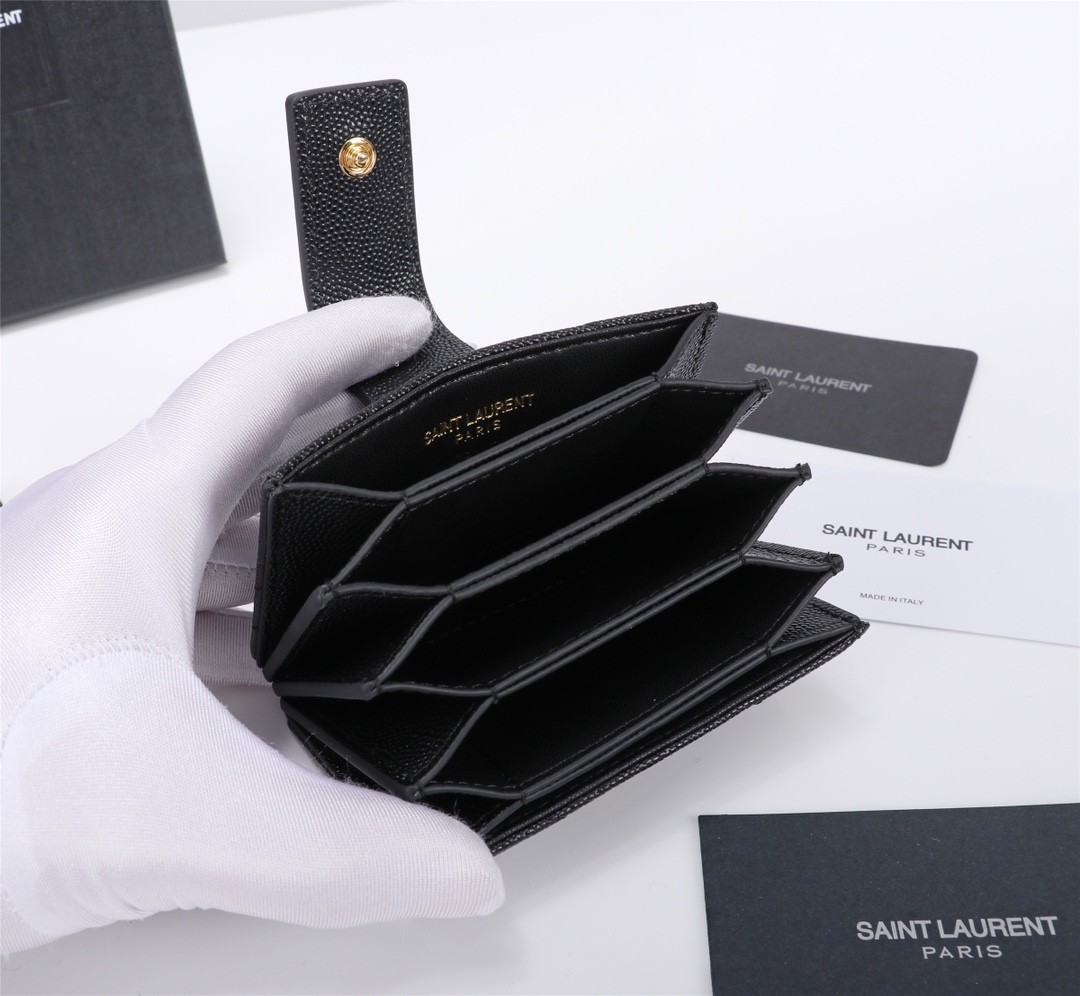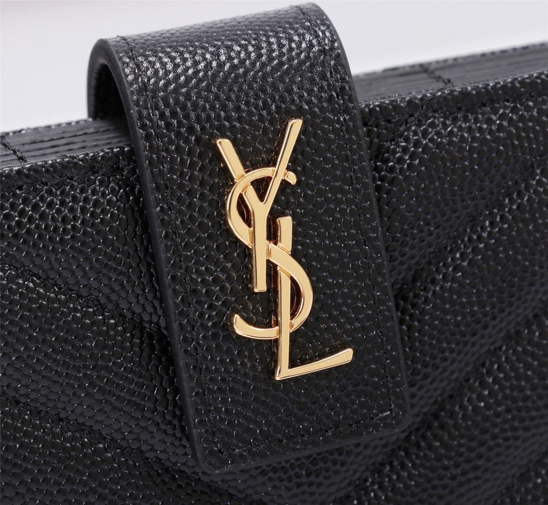 【Saint Laurent 聖羅蘭】風琴式短夾(黑金款)|荔枝壓紋皮革、金色YSL字母Logo、多層收納設計
