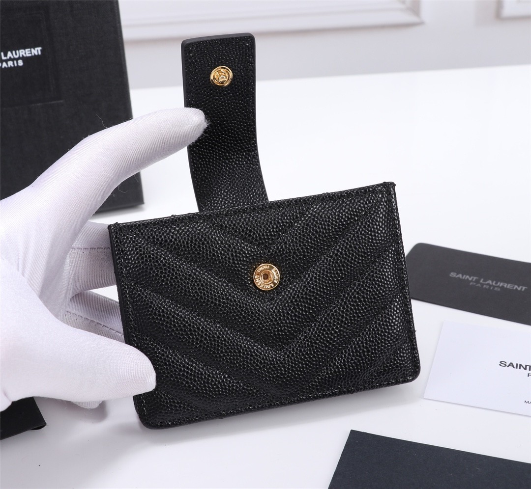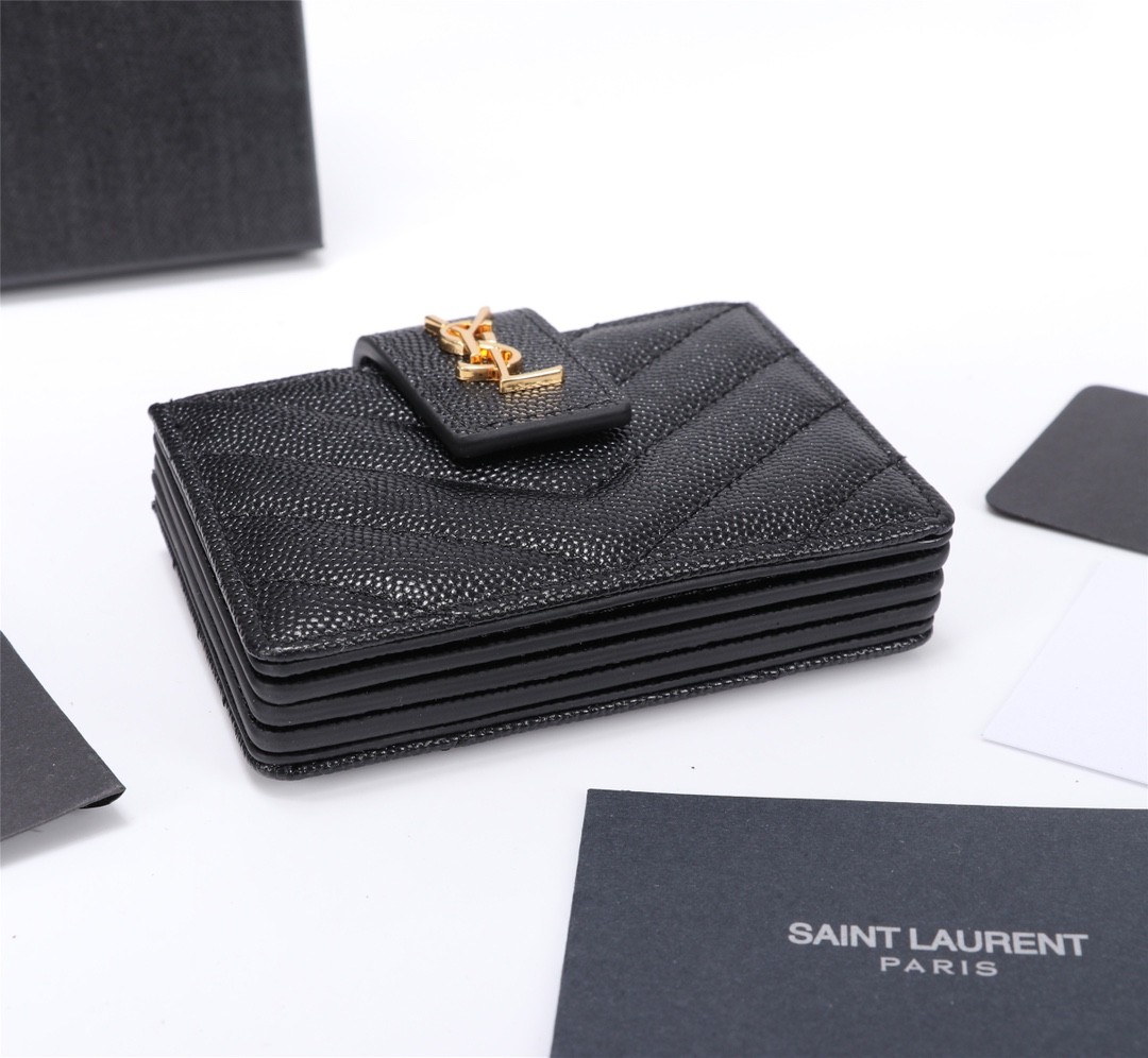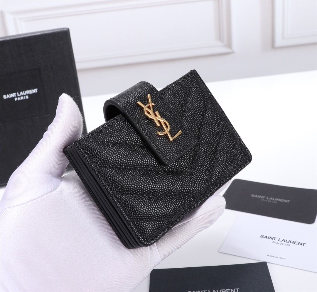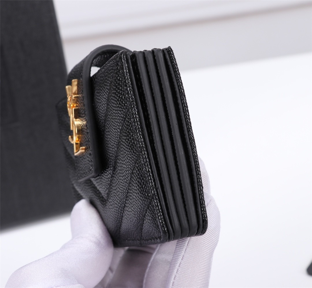 【Saint Laurent 聖羅蘭】風琴式短夾(黑金款)|荔枝壓紋皮革、金色YSL字母Logo、多層收納設計