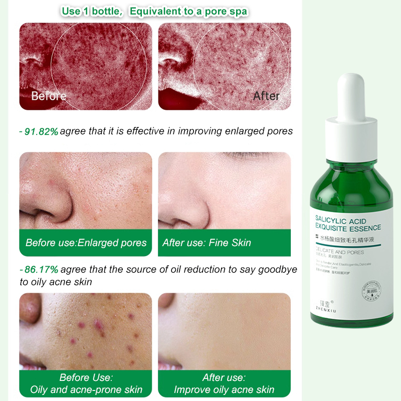 Salicylic Acid Pore Contraction Essence Moisturizing Hydrating Repair Remove Blackhead Acne Freckle Removal Hyaluronic Acid Facial Essence Pore Minimization Serum Pore Contraction