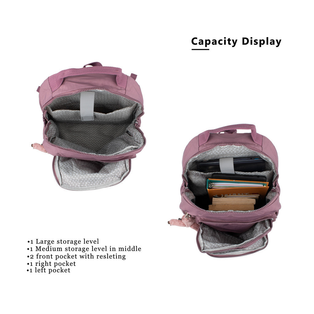 Material Quality:Good and durable Colour:Light purple Storage: many compartments My daughter liked it very much. Could fit all her belongings. The material feels like high quality. I would definitely recommend it.